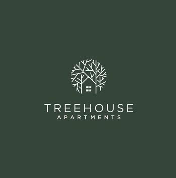 โลโก้โรงแรม-รีสอร์ทรูปหลังคาด้านบนอักษรชื่อ อาจมีใบไม้เขียวๆตกแต่งบ้างเพื่อความสดชื่นและดูร่มเย็นจนน่าเข้าพัก