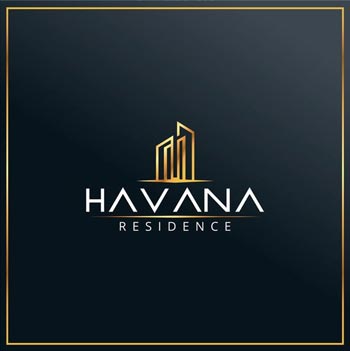 โลโก้โรงแรม-รีสอร์ทสีทองพื้นดำตัวหนังสือบางพริ้วเก๋และกลมกลืนกับรูปดี อาจมีวาดบ้านสักหลังเพื่อให้ดูง่ายขึ้นว่าเป็นโลโก้เกี่ยวกับที่พัก